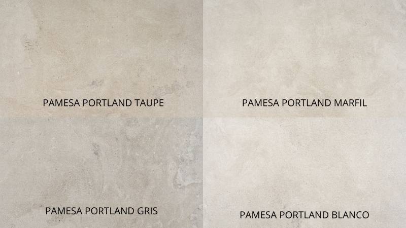 Couleurs : PORTLANDSTONE BLANCO – PORTLANDSTONE GRIS – PORTLANDSTONE MARFIL – PORTLANDSTONE TAUPE